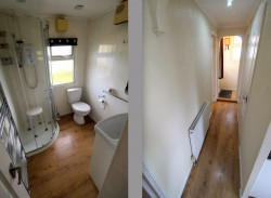 Hallway - Two doors giving access to the bedroom, handy storage cupboard/airing cupboard, timber panelled door to the shower room, archway to the rear porch/utility area.