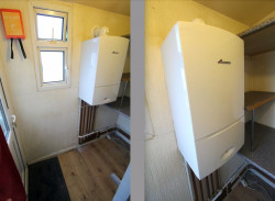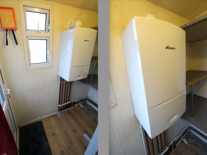 Utility Area - UPVC double glazed obscure door giving access to the rear, UPVC double glazed window to rear elevation, wall mounted Worcester Bosch gas boiler, plumbing for automatic washing machine, handy shelving for storage, laminate flooring.