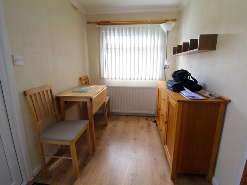 Dining Area - UPVC double glazed window to side elevation, radiator, a continuation of the laminate flooring, timber folding door to the living room, power points.