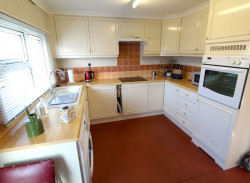 Kitchen - UPVC double glazed window to side elevation, UPVC double glazed obscure door to side elevation, a range of fitted wall and base units with rolled edge work surfaces incorporating single drainer sink unit with mixer tap, built-in electric oven with four ring electric hob and fitted cooker hood over, space for upright fridge/freezer, plumbing for automatic washing machine, handy built-in storage cupboard, radiator, power points.