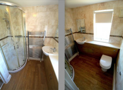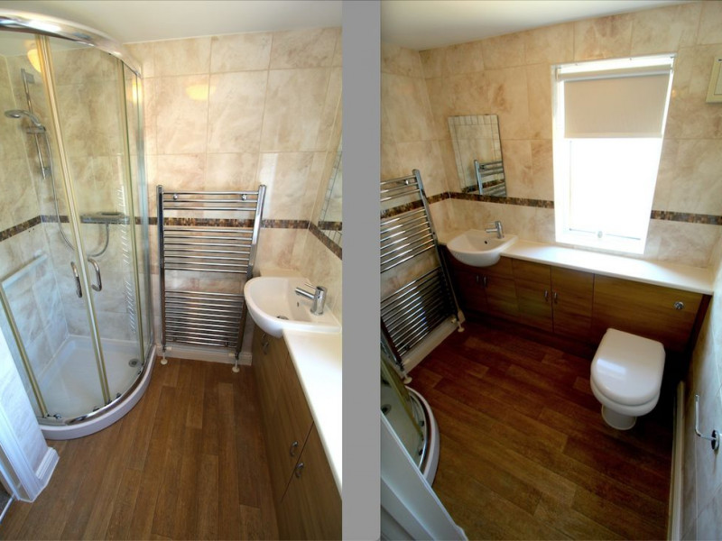 Shower Room - UPVC double glazed obscure window to rear elevation, modern white suite comprising WC with concealed cistern, inset wash basin with mixer tap, tiled splash backs and useful storage both below and to the side, fully tiled shower cubicle with mains shower, heated towel rail, wall extractor fan.