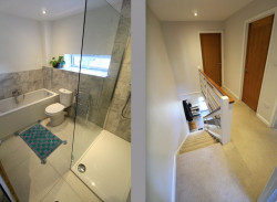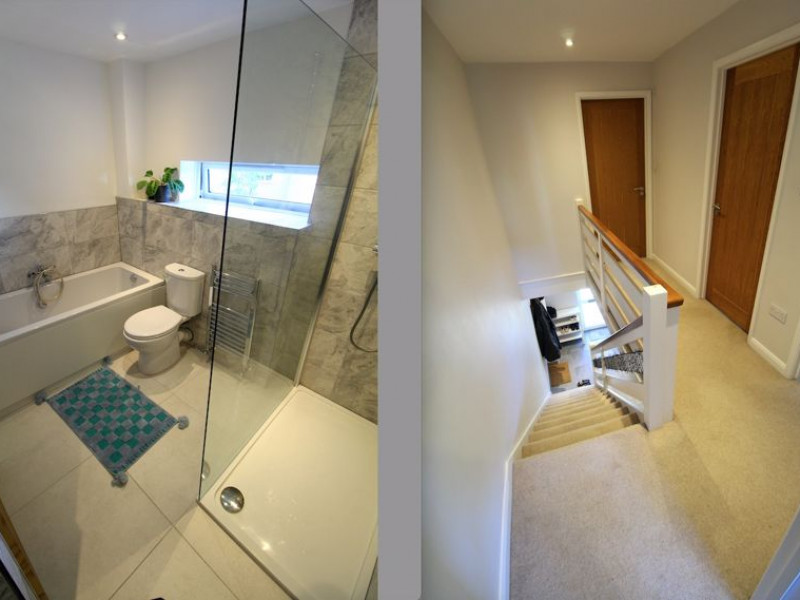 Landing - Access to loft, feature down lighters, feature timber doors to the three bedrooms and bathroom, two power points.