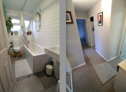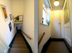 Apartment Hallway - Doors to both bedrooms, lounge/diner, kitchen and bathroom, as well as a separate airing cupboard housing the hot water tank and with shelving for storage, access to loft (which is fully boarded and has a fold down timber ladder, it is a super space and there is potential to use this area as an office area as it has the footprint of the flat and good head space), two power points.