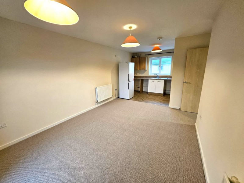 Open aspect lounge/kitchen area . - Lounge with French doors to Juliet Balcony overlooking the development and new carpet being fitted.