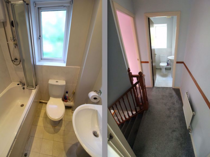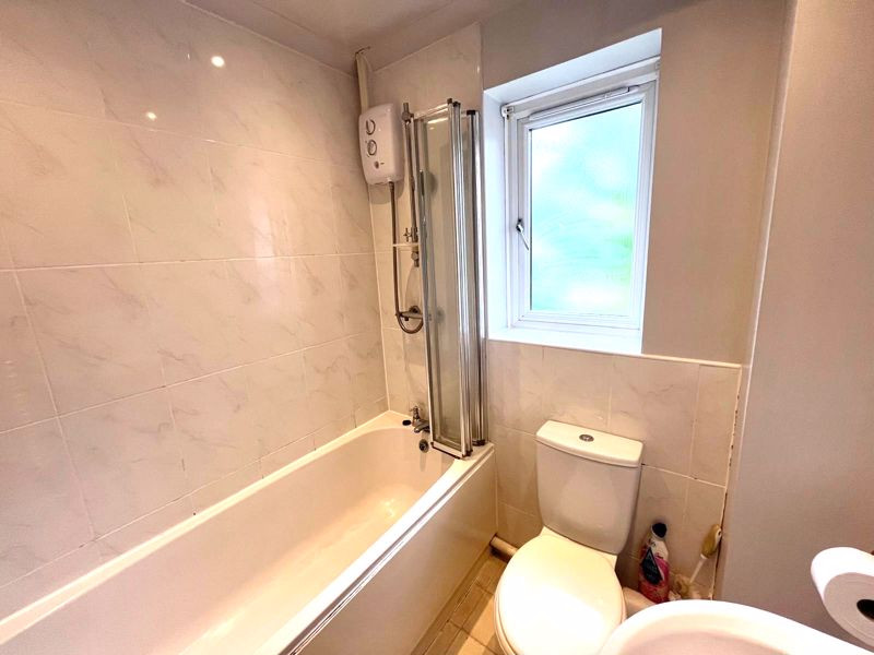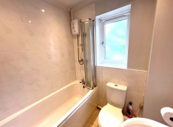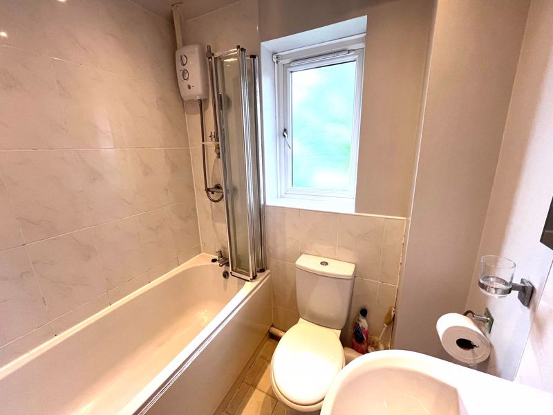 Bathroom suite with shower.
