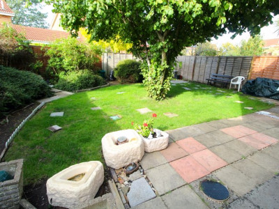 Rear Garden - Neat and tidy rear garden, laid on two tiers. The bottom tier being laid to decorative stone chippings with steps leading up to a central lawned area, then finally nearest the house a full width patio area which enjoys the sun throughout the day as it enjoys a southerly aspect, timber door giving side access to the garage, side access to the front of the house available, all well enclosed via wood lap fencing and brick built boundary wall.