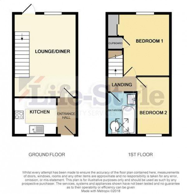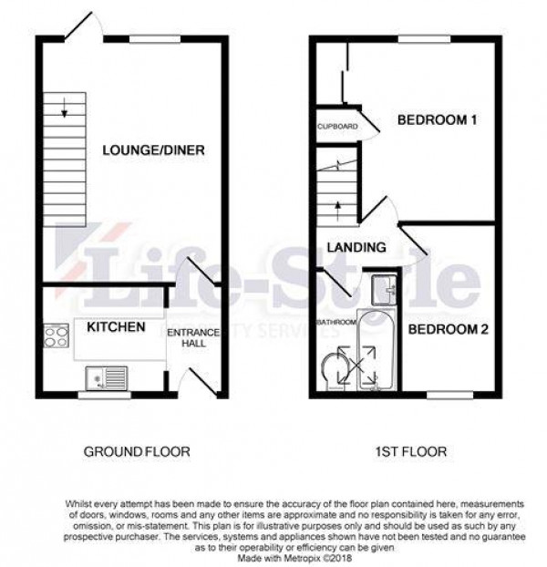 - The ground floor comprises an entrance hallway, a spacious lounge, kitchen with oven, hob, hood, washing machine and fridge, the washing machine and fridge are items of convenience. Upstairs features two bedrooms and a family bathroom with a shower over the bath.
