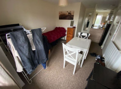 A spacious lounge. - Kitchen with oven, hob, hood, fridge/freezer and washing machine.