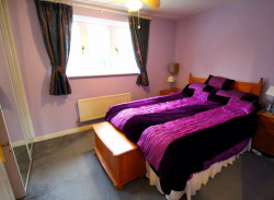 Bedroom 2 - UPVC double glazed timber effect window to front elevation, radiator, corner airing cupboard housing the hot water tank, power points.