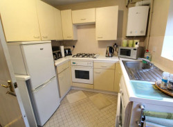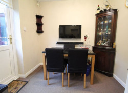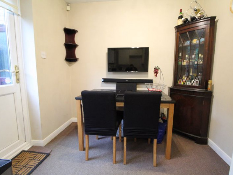 Kitchen/Diner - UPVC double glazed timber effect window and matching door to rear elevation, kitchen comprising a range of fitted wall and base units with rolled edge work surfaces incorporating stainless steel single drainer sink unit with mixer tap and tiled splash backs, built-in electric oven with four ring gas hob, plumbing for automatic washing machine, space for upright fridge/freezer, wall mounted Worcester gas boiler, radiator, power points.