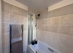 Good size second bedroom. - Modern bathroom with shower over bath.