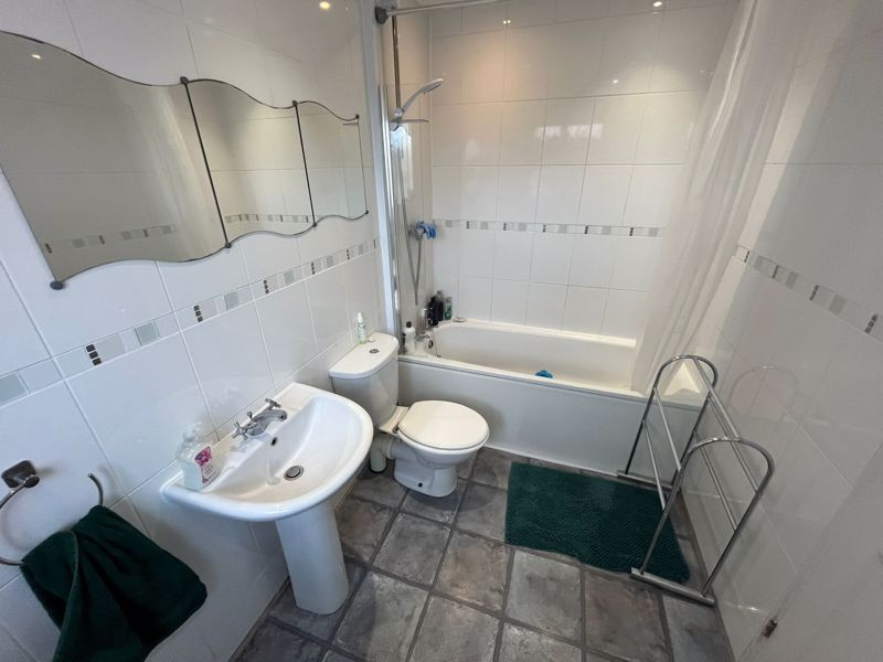 Bathroom with shower over bath. - Double bedroom with fitted wardrobes.
