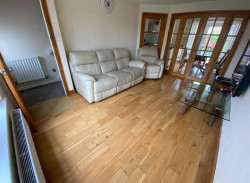 Lounge with laminate flooring. - Dining room with laminate flooring.