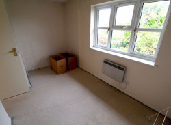 Bedroom 2 - UPVC double glazed window to rear elevation, wall mounted electric heater, corner airing cupboard housing the hot water tank.