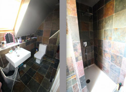 Shower Room - Double glazed timber Velux window to rear elevation, modern white suite comprising wall mounted wash basin, WC and fully tiled shower cubicle with mains shower, heated towel rail, feature spot lights, fully tiled walls and flooring.