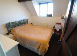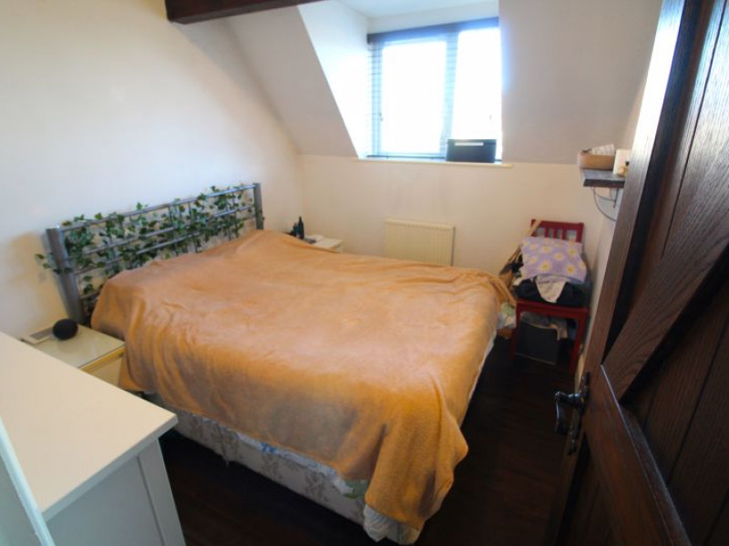 Bedroom - UPVC double glazed leaded light window to front elevation, radiator, built-in mirror fronted wardrobes, feature exposed timber beam, feature wood flooring, power points.