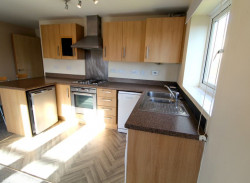 Kitchen Area - UPVC double glazed window to side elevation, a range of fitted wall and base units with rolled edge work surfaces incorporating stainless steel one and a half bowl single drainer sink unit with mixer tap and tiled splash backs, built-in electric oven with four electric hob and fitted cooker hood over, plumbing for automatic washing machine, space for two low level white goods, e.g. fridge and freezer, wall mounted gas boiler well concealed via the kitchen wall unit, ample power points.
