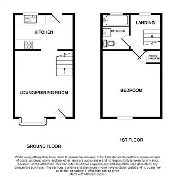 Kitchen: 12'00 x 7'03 - Bedroom: 13’9 x 12'01 (with the corner airing cupboard encroaching)