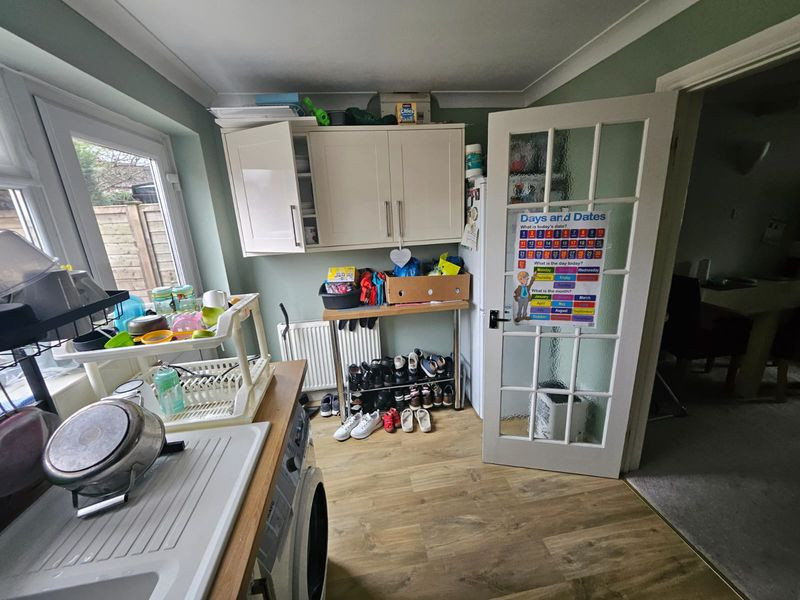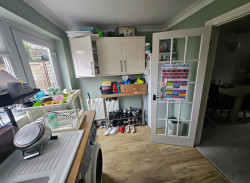 Lounge/Diner - UPVC double glazed bay window to front elevation, radiator, turned staircase to first floor with useful storage cupboard below, additional radiator, timber panelled multi paned obscure door to the kitchen, television point, ample power points.