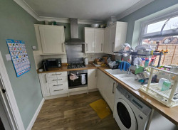 - Modern fitted kitchen with ample storage and worktop space. Comes with oven, hob, hood, washing machine and fridge/freezer.