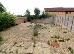 Rear Garden - Easily maintained rear garden, larger than average in size, laid to stone chippings, with a border of multiple plants and bushes providing all year round colour, UPVC half double glazed door to the garage.