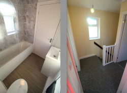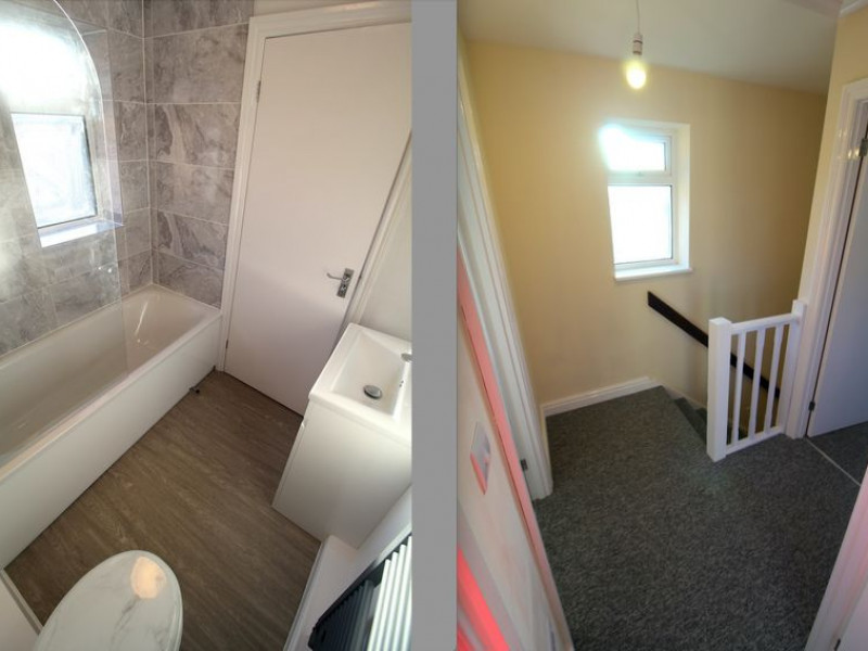 Landing - UPVC double glazed window to front elevation, access to loft, handy storage cupboard, timber doors to both bedrooms and bathroom, one power point.