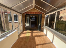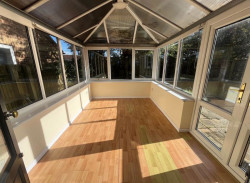 Conservatory. - Family bathroom suite with shower over bath.