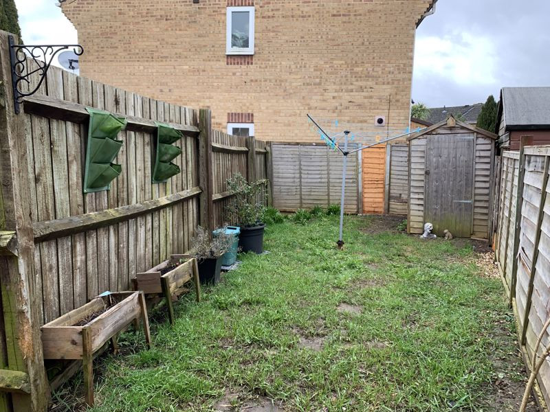 Low maintenance garden to front. - Low maintenance garden to rear with 6x4 shed.
