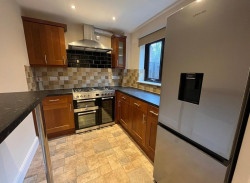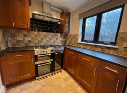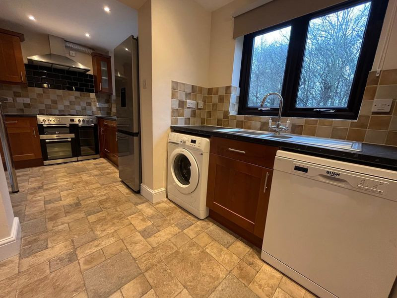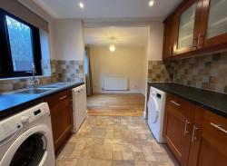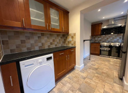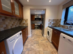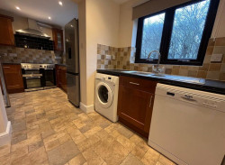 - Contemporary kitchen with dining space. White goods provided