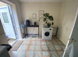 Living room. - Kitchen/diner with oven, hob, hood, washing machine and fridge/freezer.