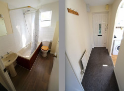 Bathroom - Double glazed timber Velux window to front elevation, bathroom suite comprising WC, pedestal wash hand basin and bath with grab handles and shower attachment over, ceiling extractor fan, radiator, shaver point and light.