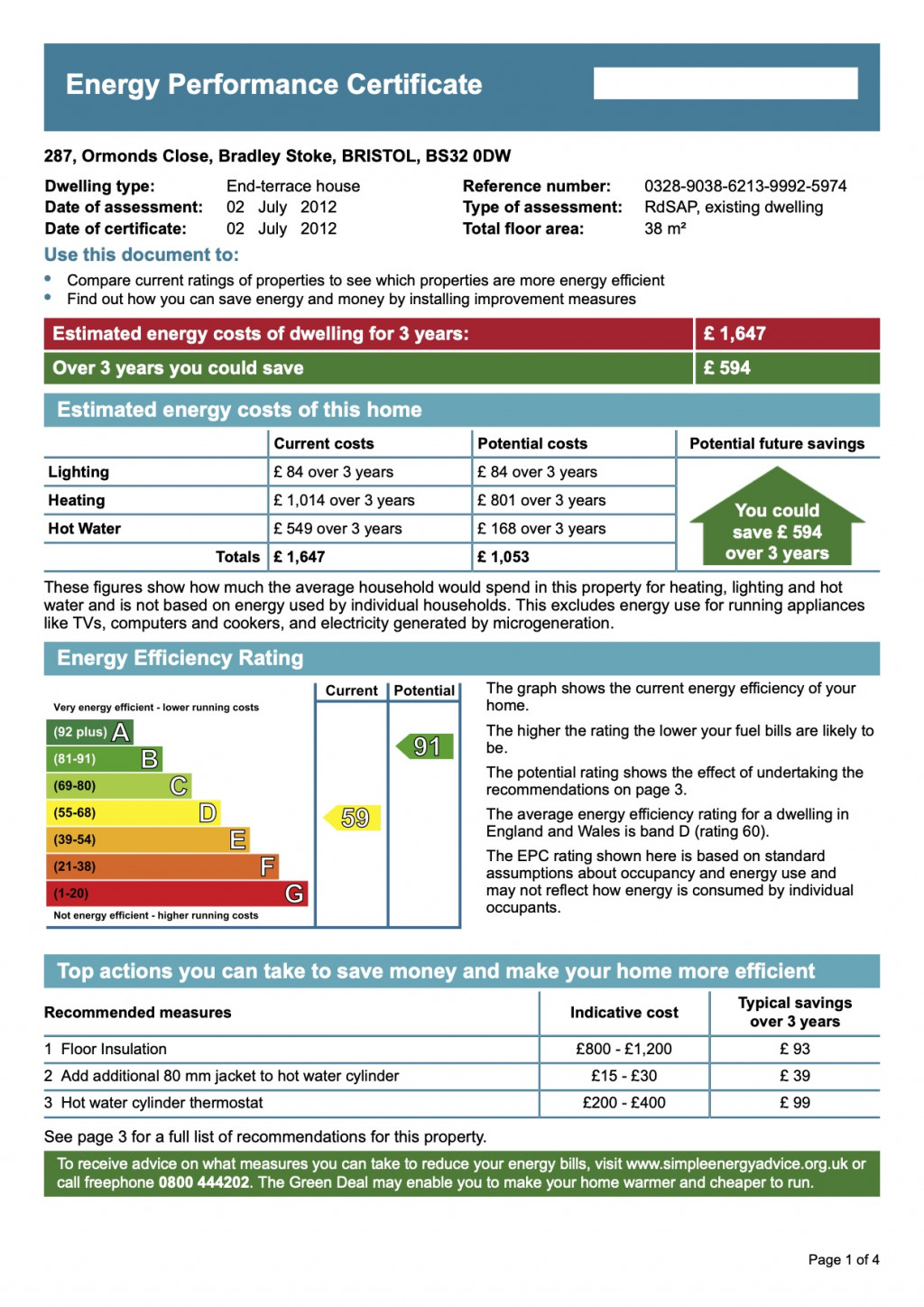 E.P.C rating - D. - Council tax band B - andpound;1,643.82.