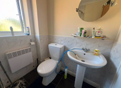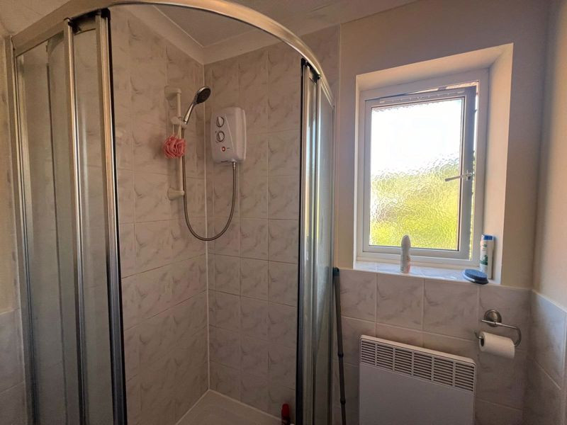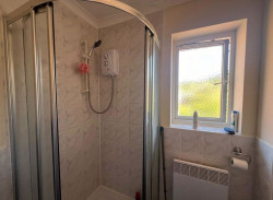 Bathroom suite with shower. - Double bedroom with fitted wardrobe.