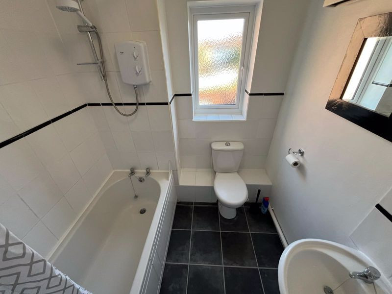 Good size second bedroom. - Bathroom with electric shower above bath.