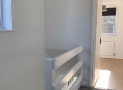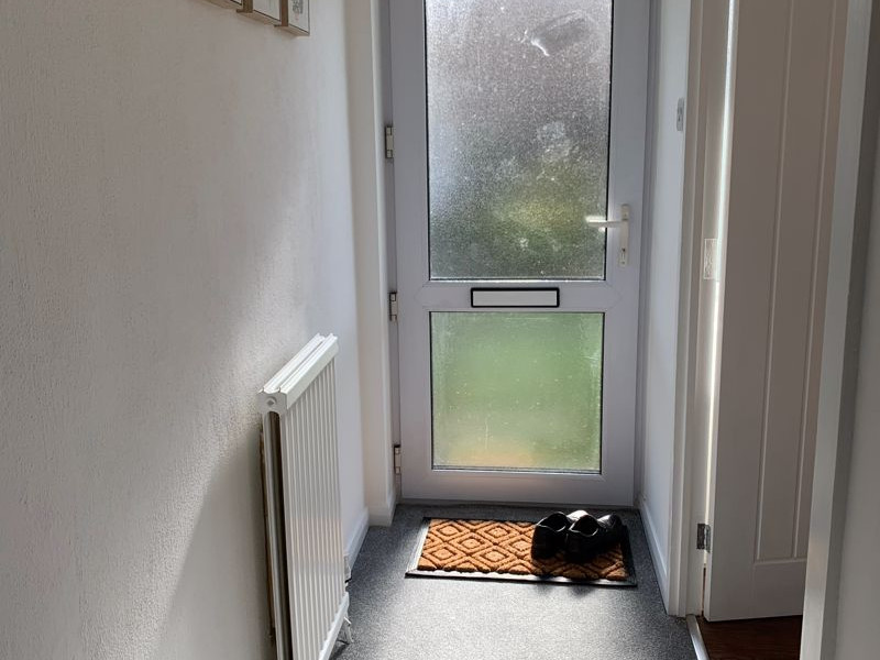 An entrance hallway. - Spacious lounge with feature wall, laminate flooring and handy under-stairs storage cupboard.