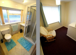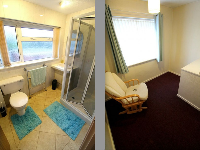 Shower Room - UPVC double glazed obscure window to rear elevation, white suite comprising WC, wash basin with tiled splash backs and useful storage cupboard below, fully tiled shower cubicle with Triton electric shower and glazed folding door, heated towel rail.