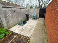Rear Garden - Laid on two levels with concrete steps between the two, patio area to the rear, flowerbeds nearest the house, all well enclosed via wood lap, stone built wall and wire fencing, rear access gate to the parking bay.